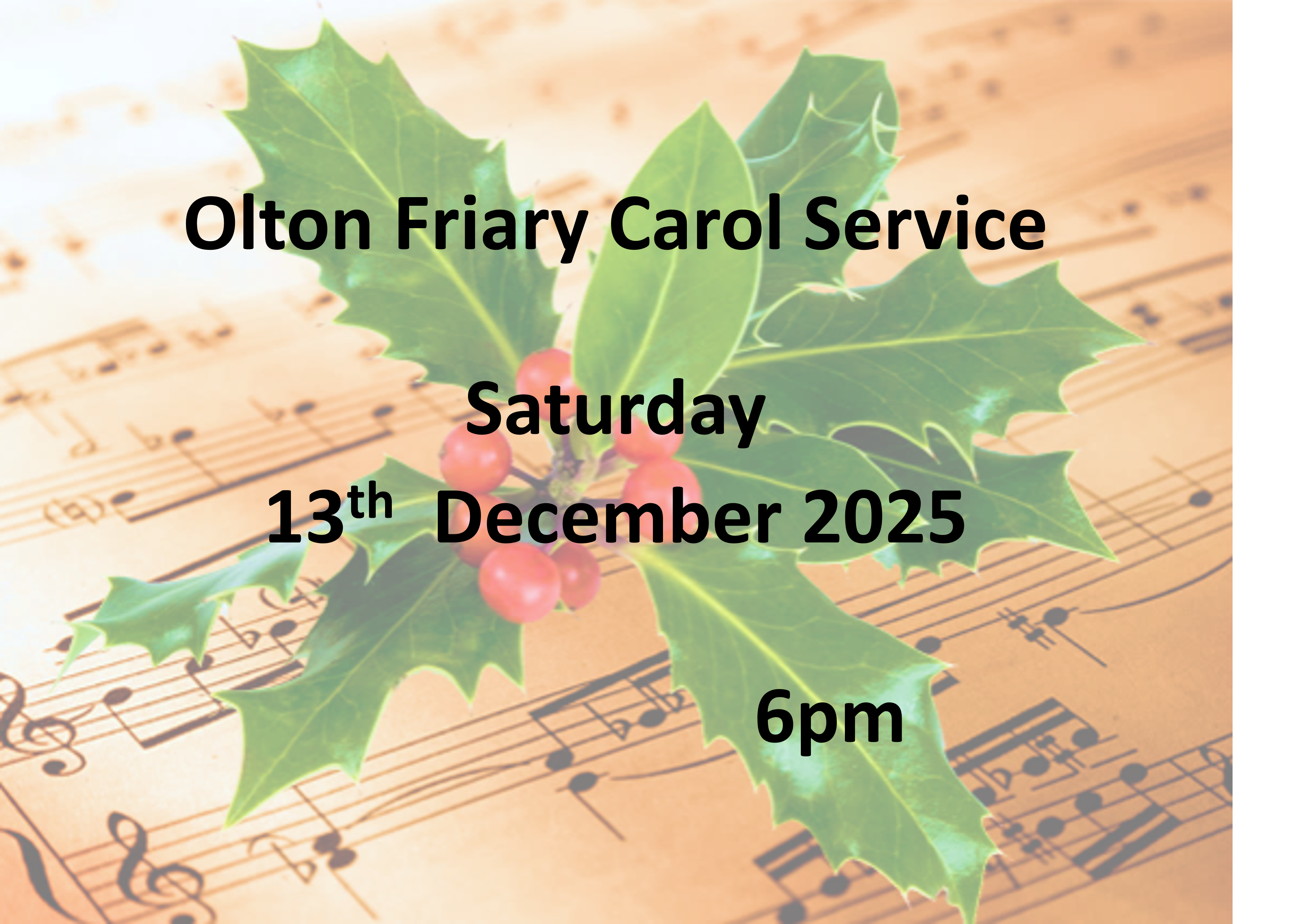 Olton Friary presents its Carol Service 2025, on Saturday 13th December at 6pm in church. Come along and sing some of your favourite carols, hear the choir, and follow it all up with tea, coffee and warm mince pies afterwards.